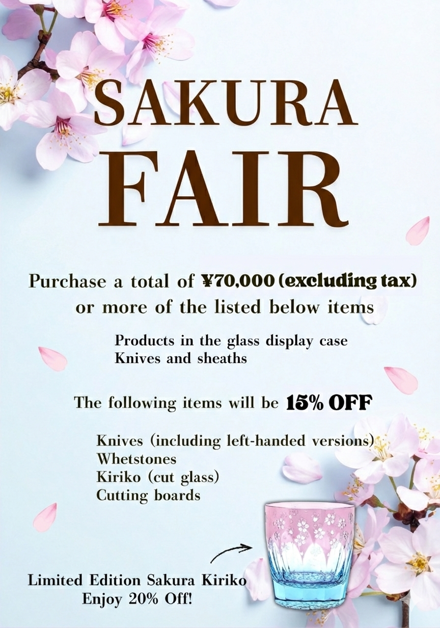 3) Premium Buyer Bonus: Spend over ¥70,000 on knives and whetstones, and receive 15% OFF any additional items!